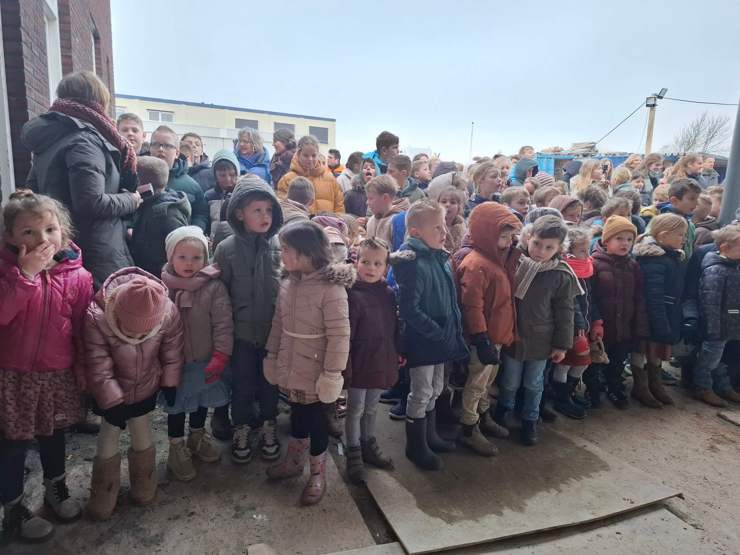Vanmiddag is het zover. Alle leerlingen verzamelen zich rond de hoofdingang van de nieuwe school. Eerst luisteren we naar een toespraak van ds. Baaijens en meneer Verhulst. Daarna plaatsten ds. A.P. Baaijens en de voorzitter van het schoolbestuur (symbolisch) de eerste steen voor de nieuwe basisschool. De leerlingen en belangstellenden zongen samen psalm 105 vers 5 en psalm 78 vers 3 met de toepasselijke woorden: “God vordert dat de naneef eeuwenlang, van kind tot kind dit onderwijs ontvang”. Na de toespraken van de dominee en de voorzitter kregen de leerlingen een traktatie in de vorm van een chocoladesteen. Na afloop konden de belangstellenden onder het genot van een hapje en drankje de nieuwe school in aanbouw bekijken.